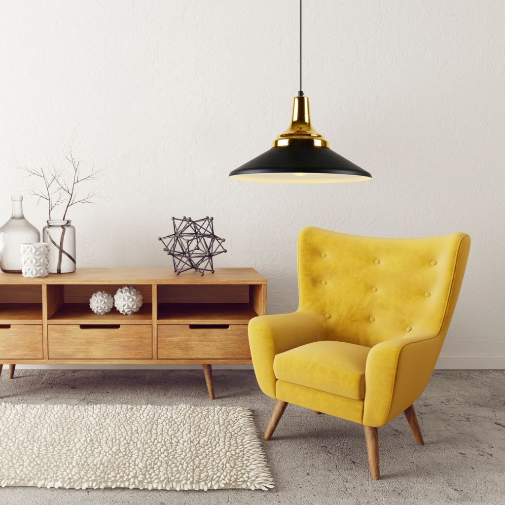 Toolight, závěsné kovové stropní svítidlo 1xE27 APP292-1CP, černá matná-zlatá, OSW-00863