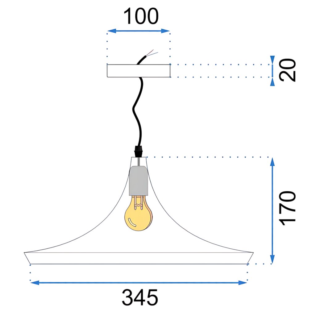 Svítidla byla vyrobena výlučně z kovu s mřížkou na stropě. Lampa má nejoblíbenější závit určený pro žárovku E27. Délku kabelu lze nastavit podle místnosti nebo uspořádání.