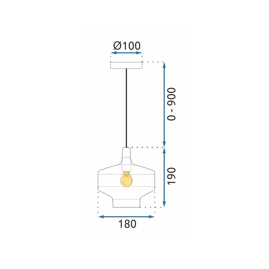 Lampa byla vyrobena ze skla a kovu s mřížkou na stropě. Lampa má nejoblíbenější závit určený pro žárovku E27. Délku kabelu lze nastavit podle místnosti nebo uspořádání.