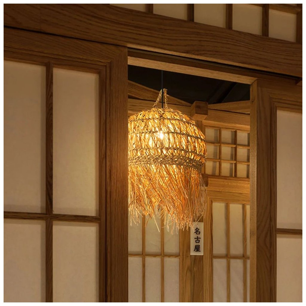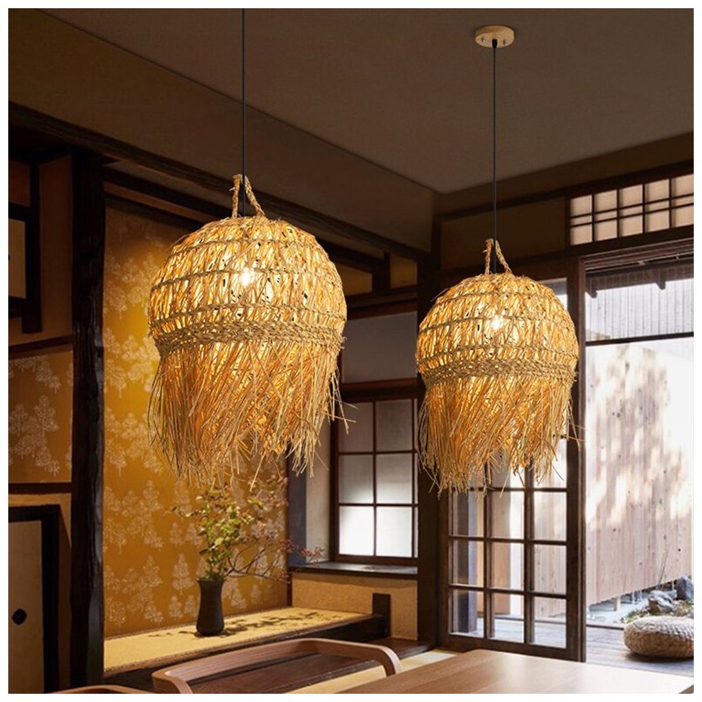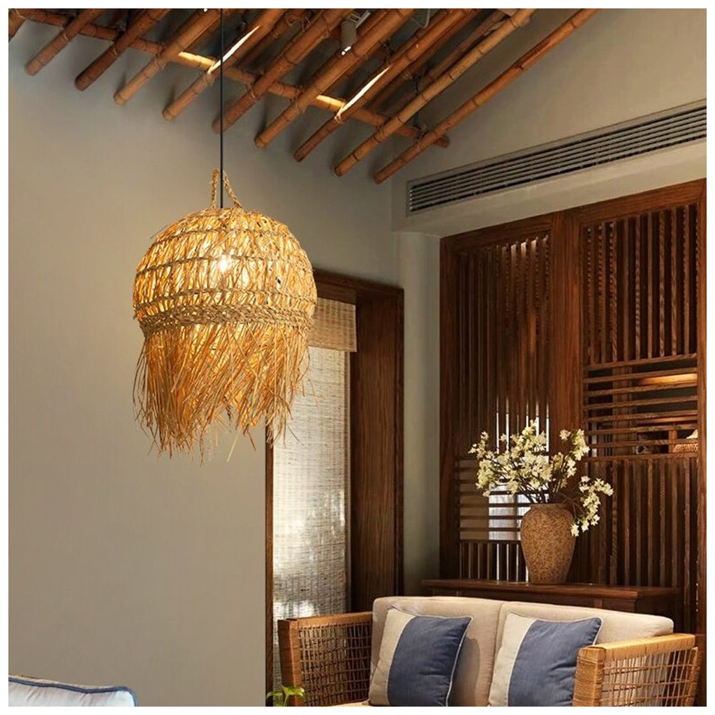 Lampa ve stylu Boho vyrobena z přírodní krásné bambusové trávy. Tato šňůrka je ručně tkaná a vytváří jedinečný a jedinečný prvek dekoru. Nadčasová klasika do každého prostoru!