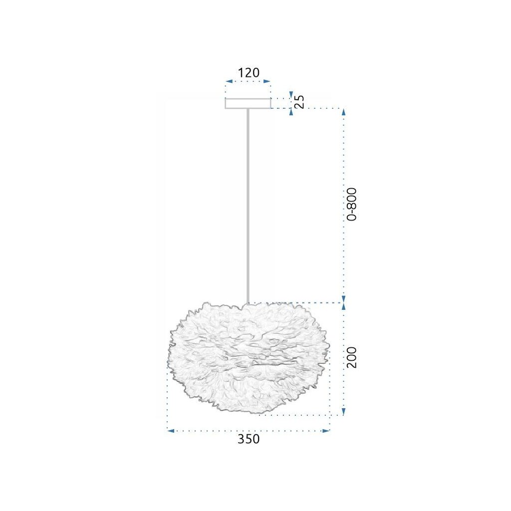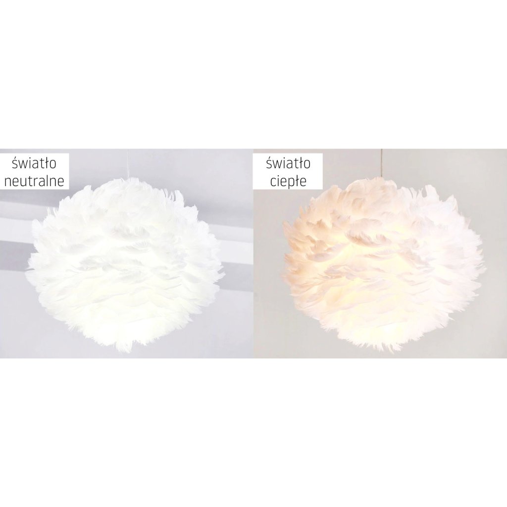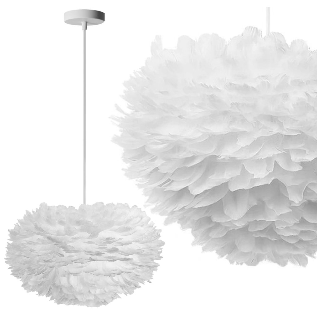 Lampa je vyrobena z ručně lepeného přírodního peří a kovového rámu.