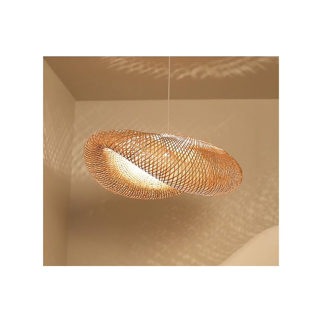 Lampa je vyrobena z propleteného přírodního bambusového dřeva nejvyšší kvality. Moderní a stylový vzhled, díky kterému bude interiér jedinečný. Díky svému designu dokonale zapadá do boho stylu a rustikálních a podkrovních interiérů. Díky jednoduchému stylu se lampa vejde do každé místnosti – ať už do kuchyně, obývacího pokoje nebo dětského pokoje.