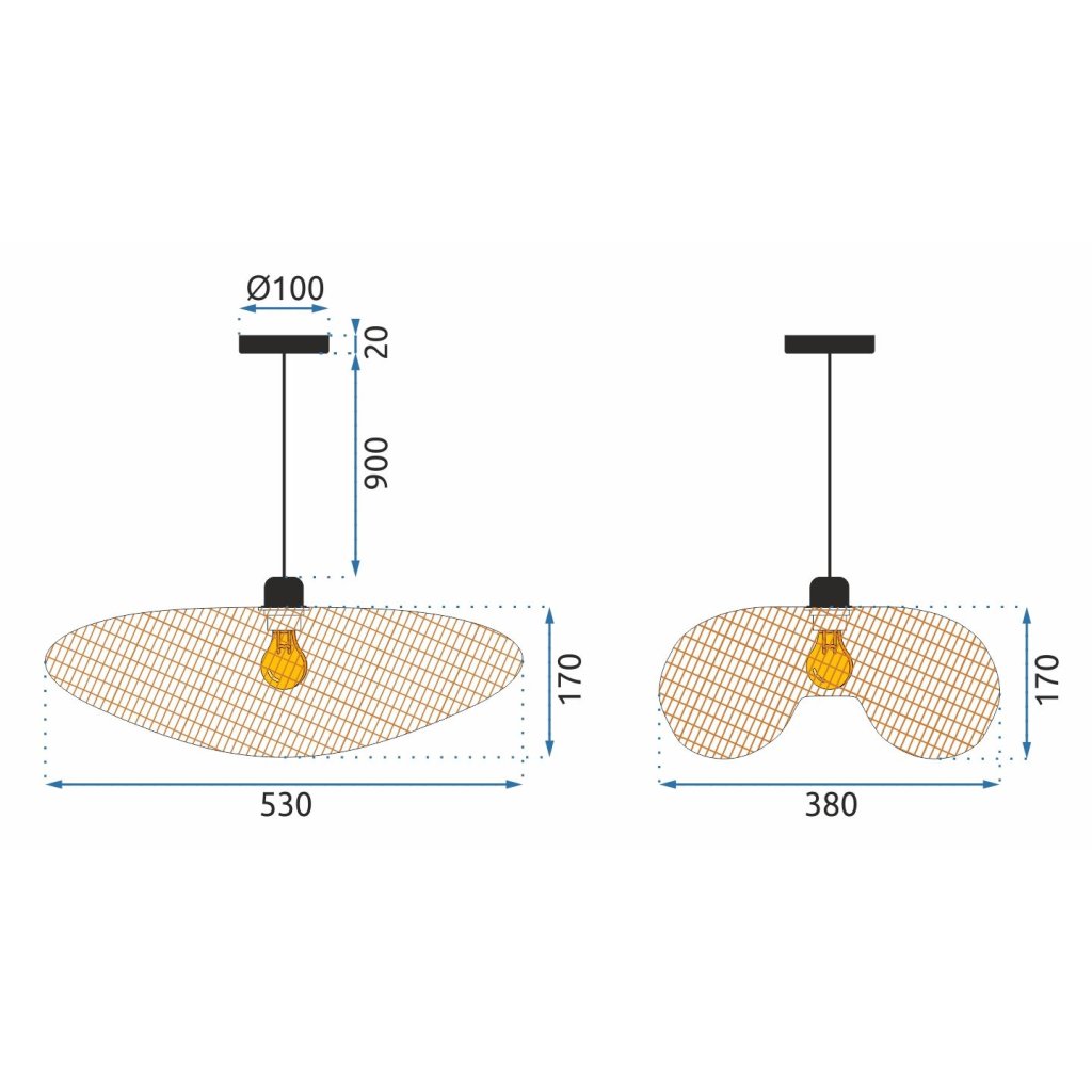 Lampa byla vyrobena z kovu spolu s mřížkou na stropě. Lampa má nejoblíbenější závit určený pro žárovku E27. Délku kabelu lze nastavit podle místnosti nebo uspořádání.