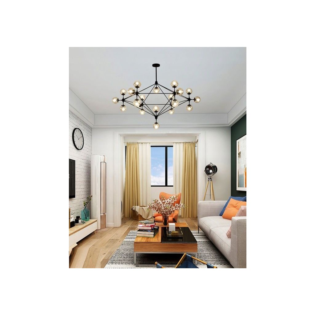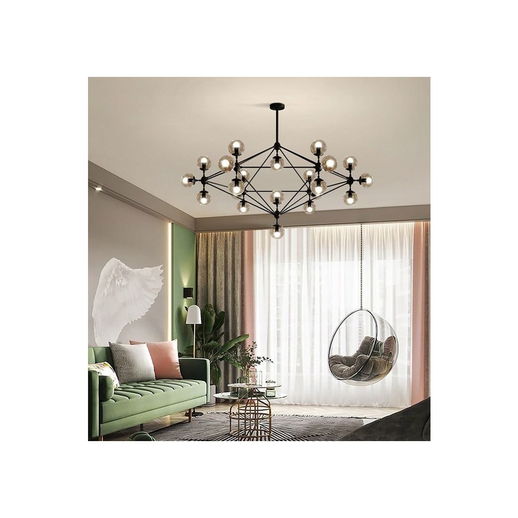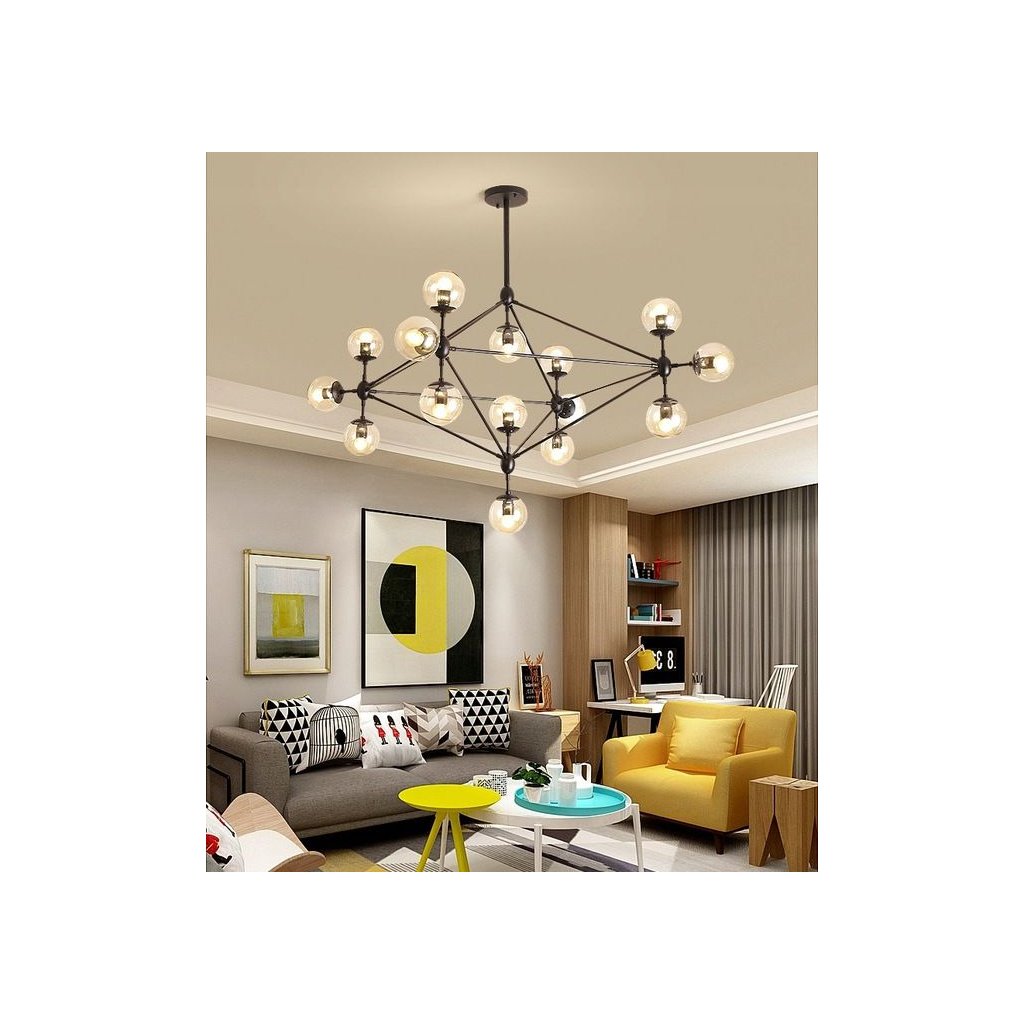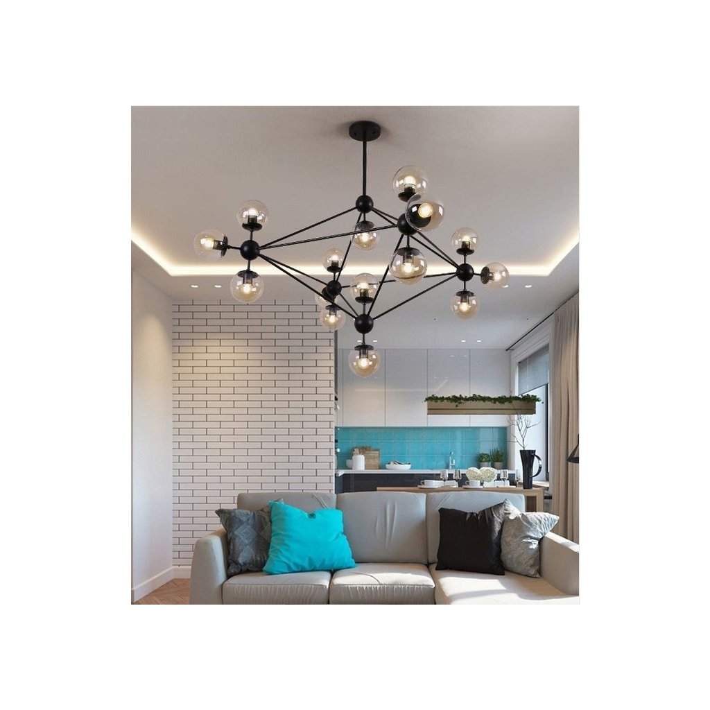 Prezentovaná lampa je jistě odvážnou volbou – není těžké si všimnout, že náš produkt okamžitě přitahuje pozornost. To vše díky výjimečně mnoha ramenům, která jsou doplněna závitem pro žárovku, což znamená, že lampa může napájet až patnáct světelných bodů!