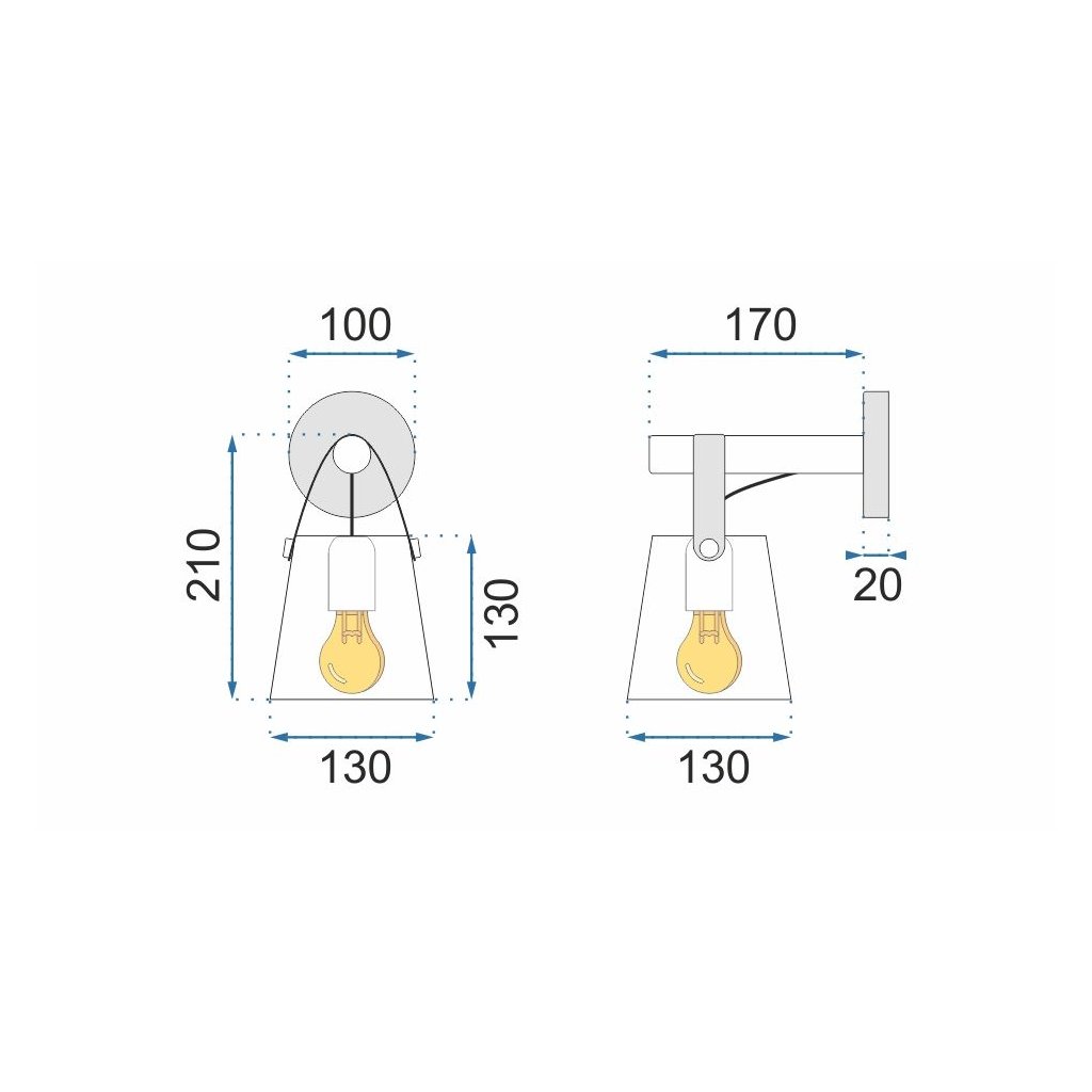 Lampa byla vyrobena z kovu s mřížkou proti zdi. Všechno drží dřevěná tyč. Lampa má nejoblíbenější vlákno určené pro žárovku E27.
