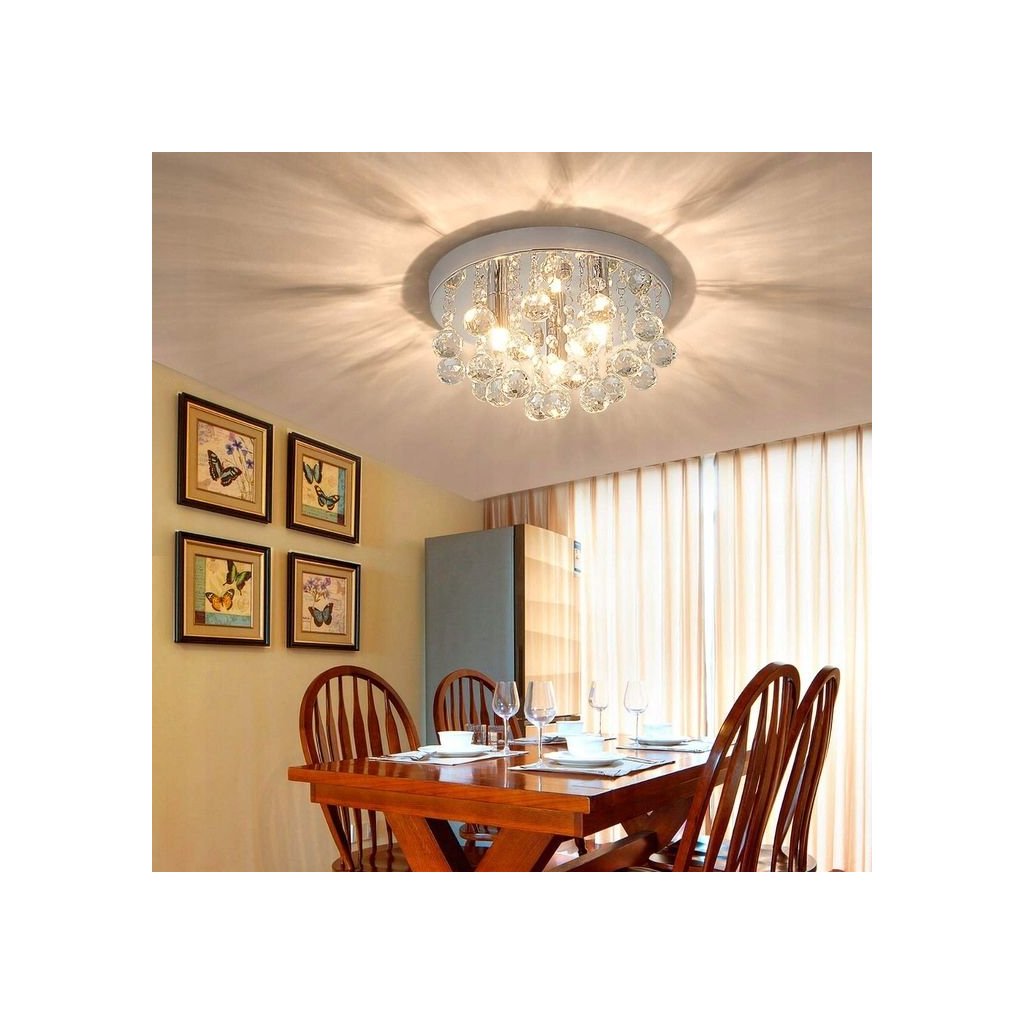Stropní lampa je vyrobena z vysoce kvalitního kovu odolného vůči poškrábání nebo mechanickému poškození. Celý charakter a elegantní poznámka jsou doplněny krystaly umístěnými téměř na celém povrchu lampy.