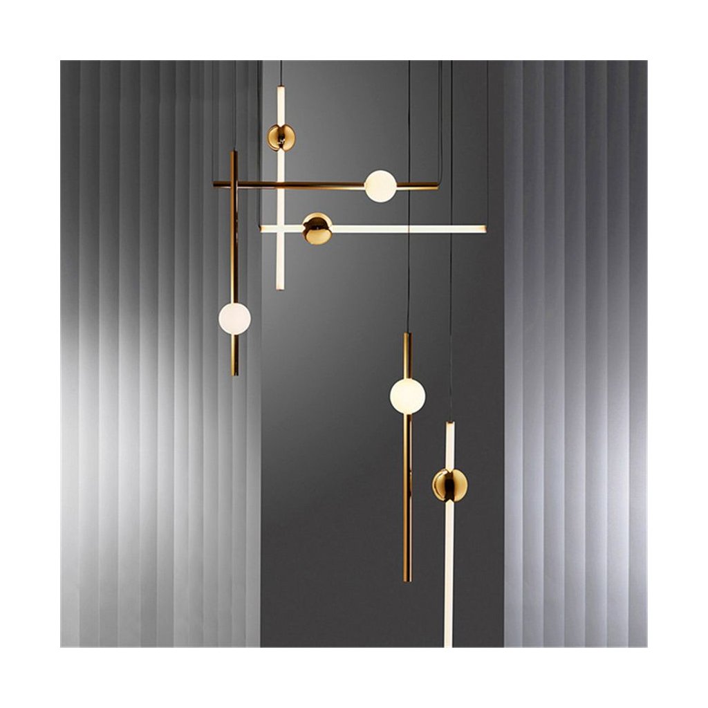Zlatá koule na lampě se může volně pohybovat.