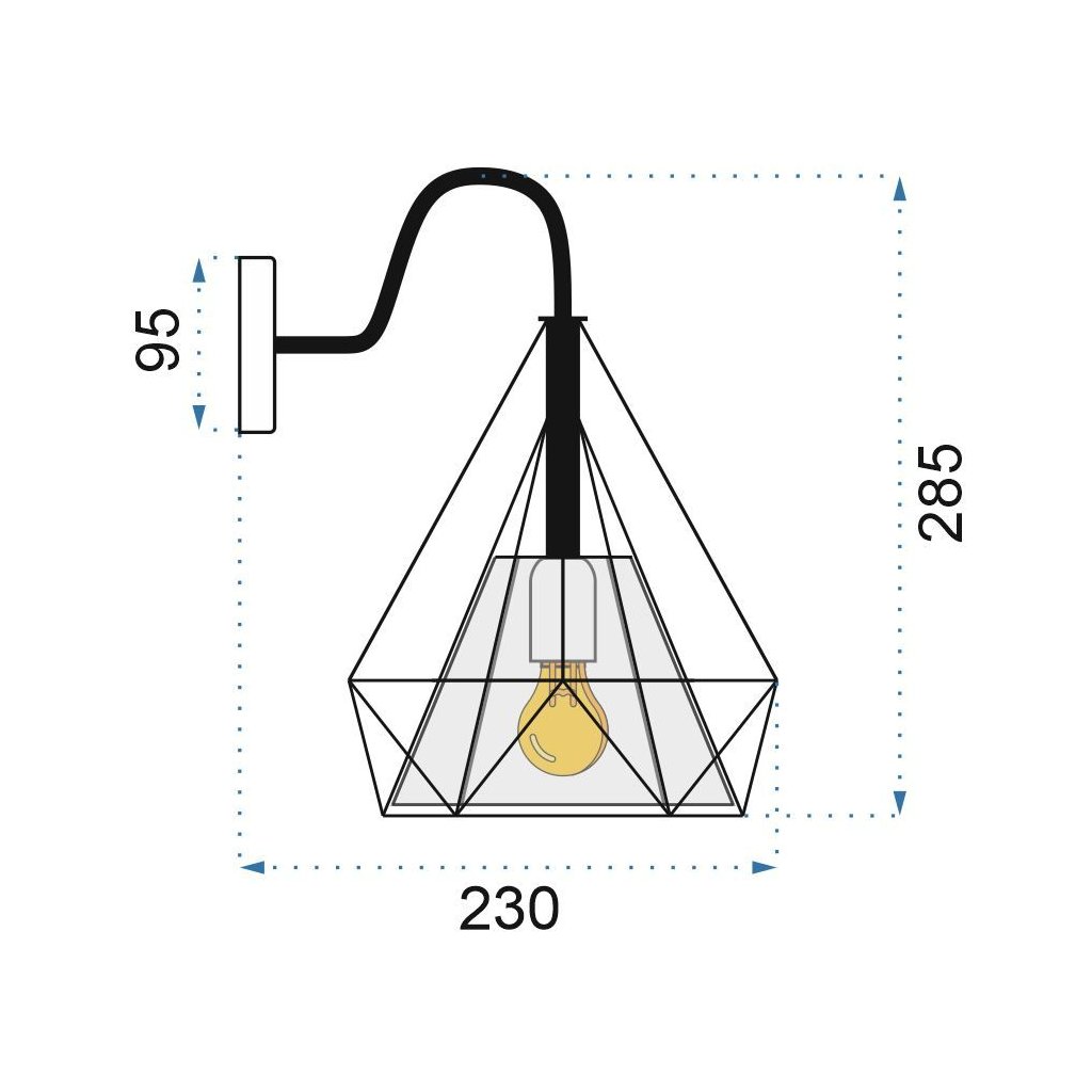 Podkrovní nástěnná lampa, vyrobená s maximální pozorností k detailům a detailům. Geometrický styl, ve kterém byl vytvořen, bude perfektně fungovat v moderním, minimalistickém podkroví nebo průmyslových interiérech. Na výrobu lampy se použila nejkvalitnější ocel, která byla v další fázi výroby několikrát pokryta vrstvou antistatického skloviny. To umožnilo získat ideální povrch, odolný vůči poškrábání a jakýmkoli odřeninám nebo mechanickému poškození.