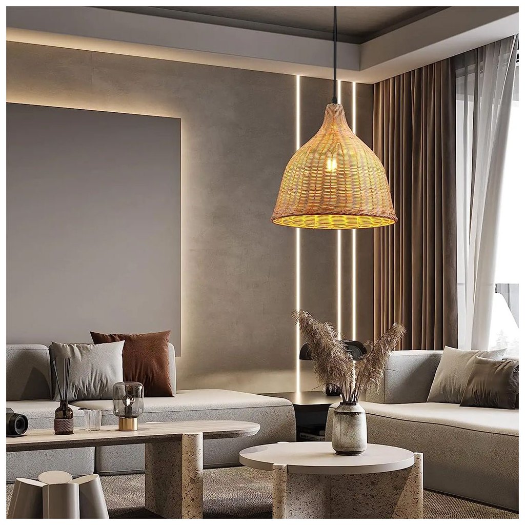 ☀️ Závěsná stropní lampa Boho bambusová lamela je mimořádně stylovým světelným prvkem, který do interiéru vnáší teplo, přirozené kouzlo a jedinečný design. Ideální do obývacího pokoje, jídelny, kuchyně, ložnice i do komerčních prostor, jako jsou kavárny a restaurace.