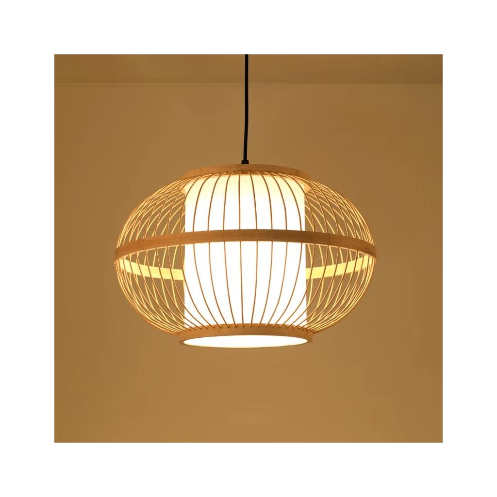☀️ Moderní závěsná lampa v boho stylu vyrobená z přírodního bambusu je elegantním doplňkem každého interiéru. Jeho geometrický, prolamovaný design jemně rozptyluje světlo a vytváří příjemnou atmosféru v místnosti.