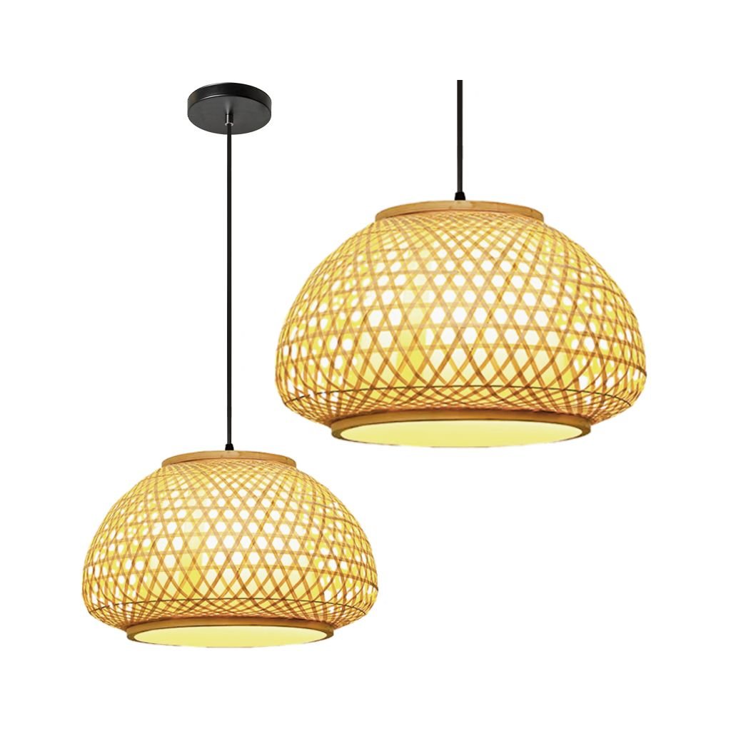 ☀️ Bambusová závěsná lampa v boho stylu je elegantním doplňkem každého interiéru. Jeho prolamovaný, geometrický design jemně rozptyluje světlo a vytváří příjemnou atmosféru.