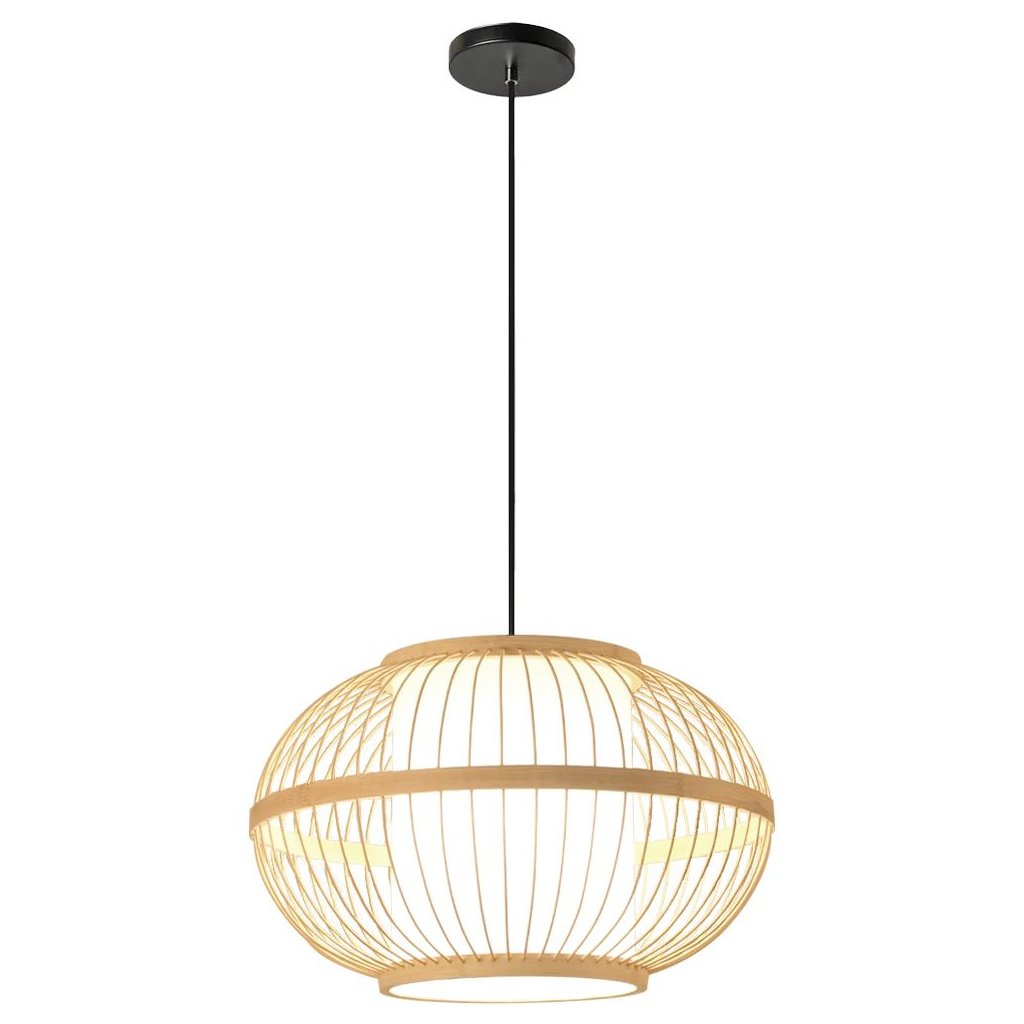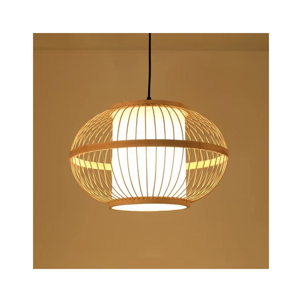 Moderní závěsná lampa v boho stylu vyrobená z přírodního bambusu je elegantním doplňkem každého interiéru. Jeho geometrický, prolamovaný design jemně rozptyluje světlo a vytváří příjemnou atmosféru v místnosti. Bílé centrální stínítko ještě více zdůrazňuje minimalistický design lampy a dodává jí lehký a moderní charakter.
