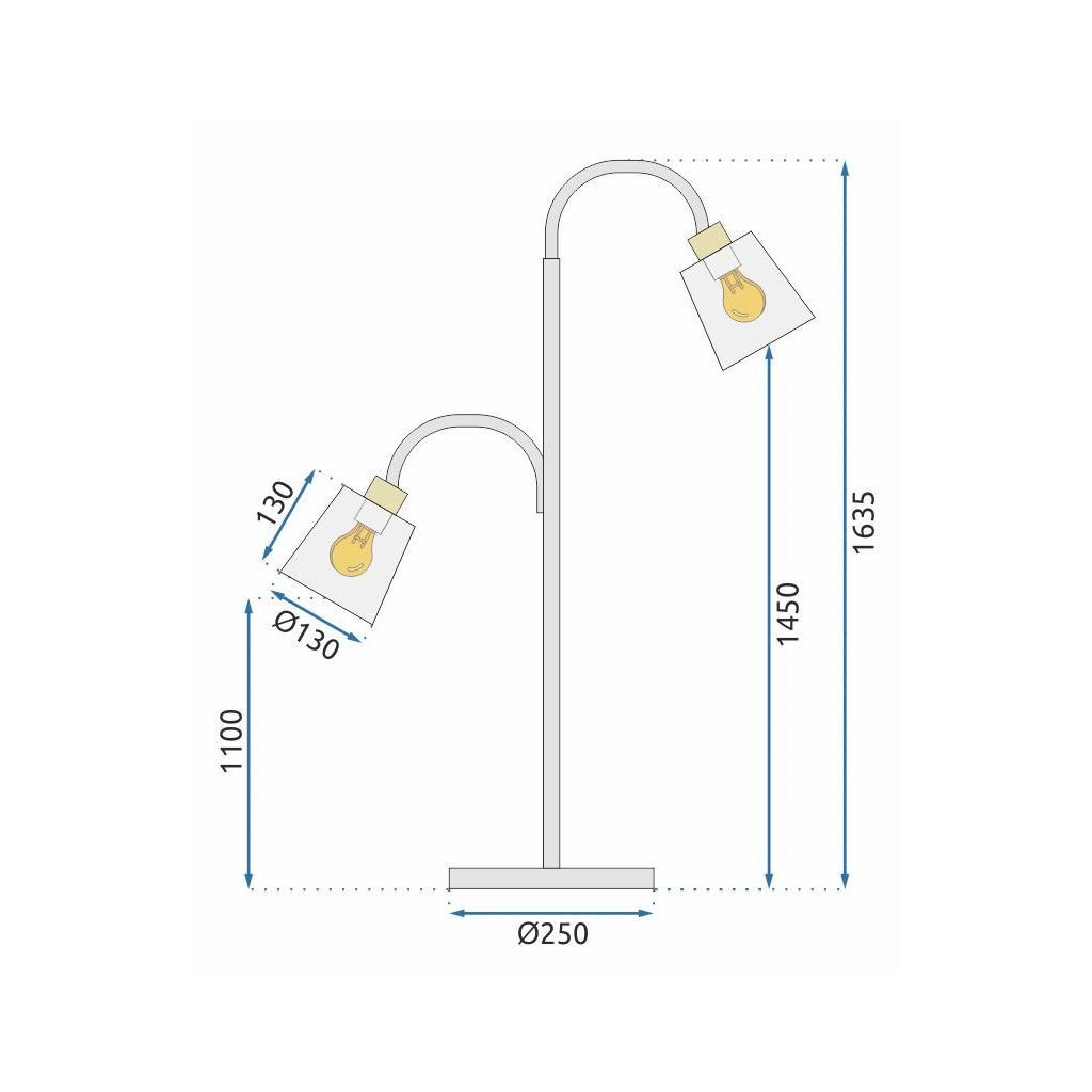 Lampa je vyrobena hlavně z kovu. Výška lampy je pevná a její horní část se otáčí, bude dokonalá jako podpůrné, dekorativní nebo funkční světlo. Osvětlení má vypínač na nohy, který umožňuje snadné a pohodlné používání lampy.