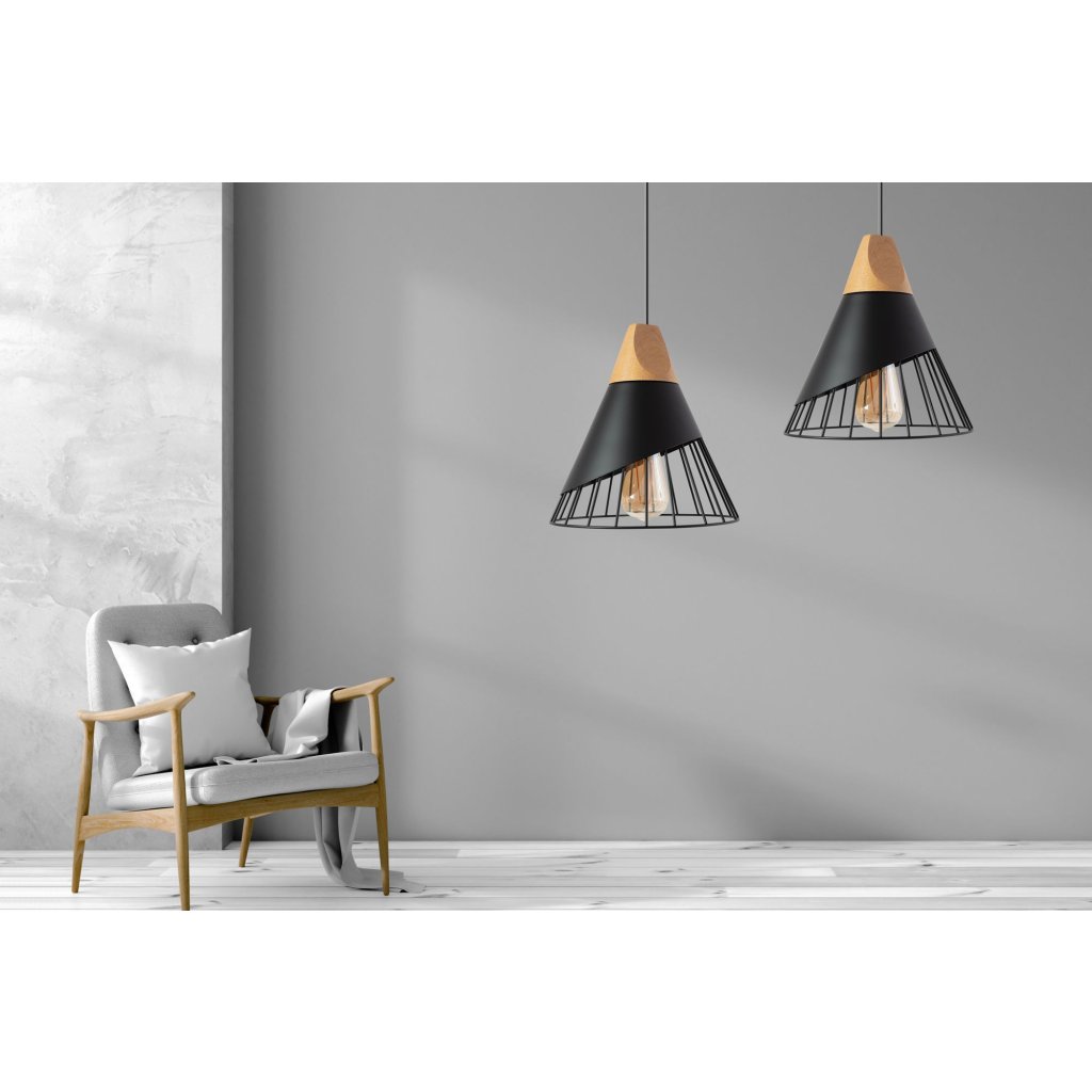 Závěsná lampa ve skandinávském stylu. Kombinuje krásný design s funkčností. Kombinace dřevěných a hliníkových prvků a tvaru koše dává celku eklektickou formu. Díky rámu s avantgardními tyčemi a asymetrickým stínítkem vypadá celek jako nejlepší doplněk skandinávského nebo minimalistického stylu. Vyrobeno z hliníku v kombinaci se dřevem. Nastavitelný kabel vám umožní přizpůsobit se jakémukoli interiéru. Výrobek je k dispozici ve čtyřech barevných variantách: bílá, černá, černá a zlatá a černá v kombinaci s růžovým zlatem.