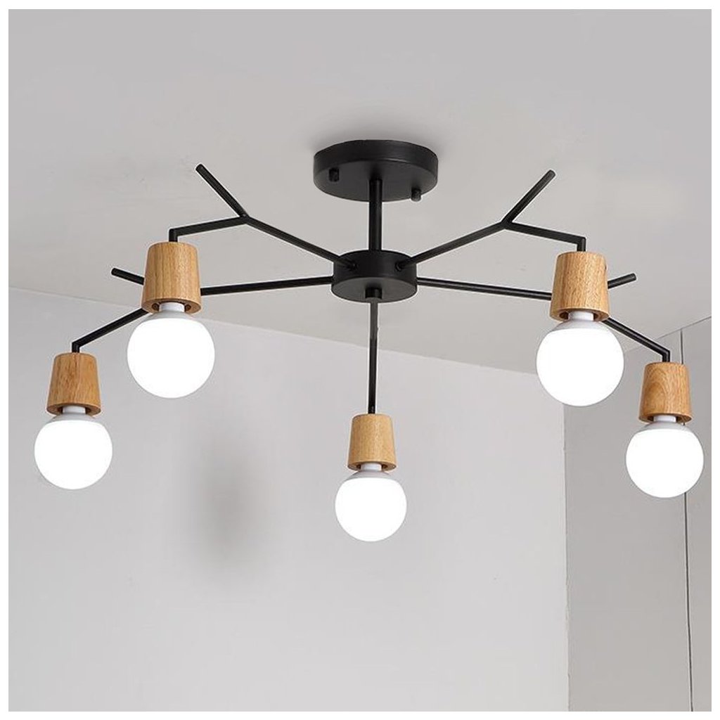 Toolight - Skandinávská kovová stropní lampa 5xE27 60W APP694-5C, černá-hnědá, OSW-05465