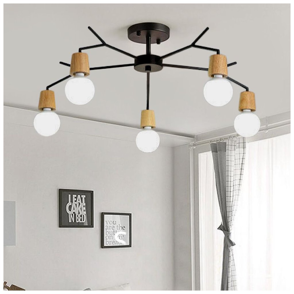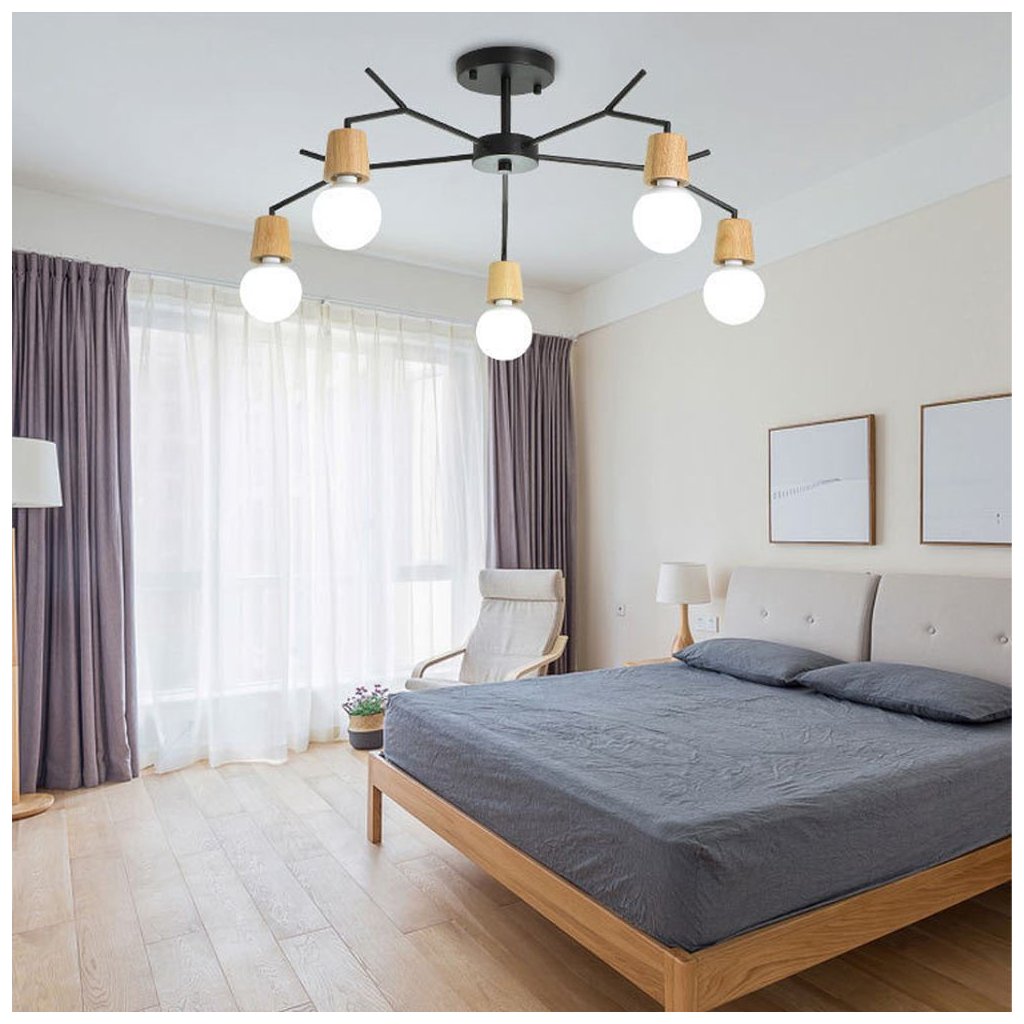 Stropní lampa ve skandinávském stylu, vyrobená s maximální pozorností k detailům a detailům. Geometrický styl, ve kterém byl vytvořen, bude dokonale fungovat v moderních a minimalistických interiérech. K výrobě lampy se používá kov a dřevo nejlepší kvality. To vám umožní získat ideální povrch, odolný vůči poškrábání a jakýmkoli odření nebo mechanickému poškození. Černá povrchová úprava, dává šik a eleganci.