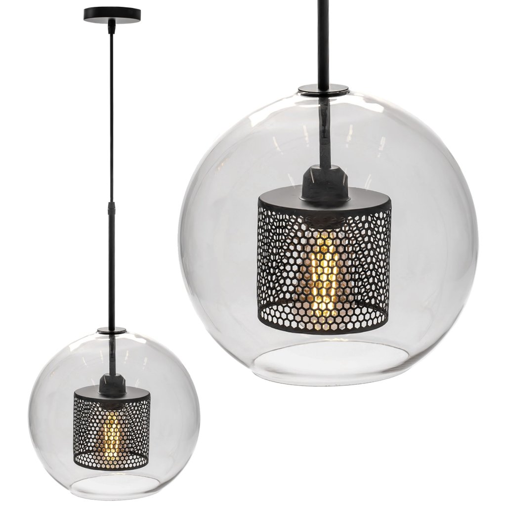 Toolight - Skleněná závěsná lampa 30cm 1xE27 60W APP559-1CP, černá, OSW-09669