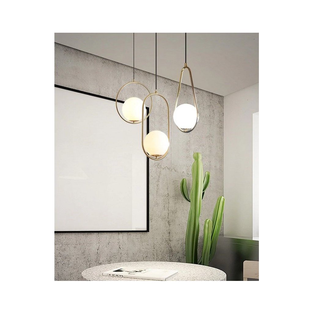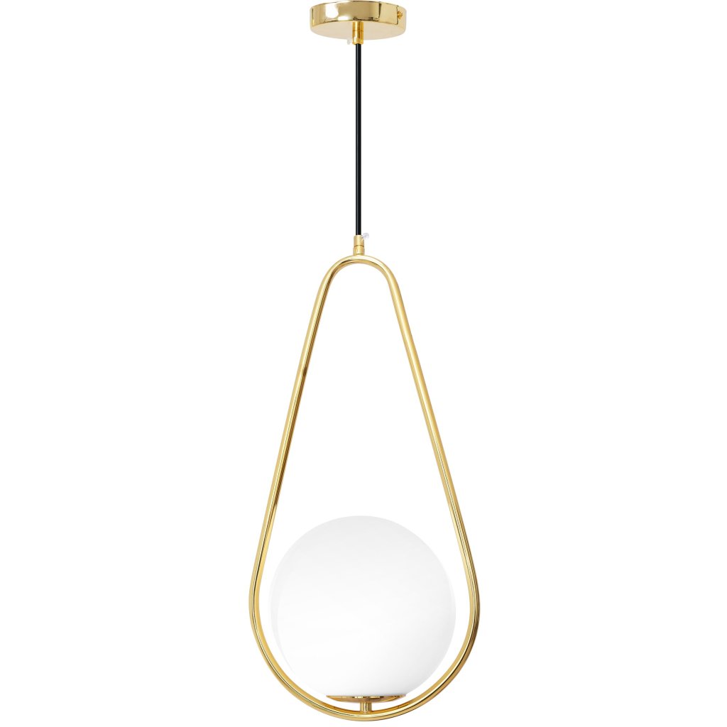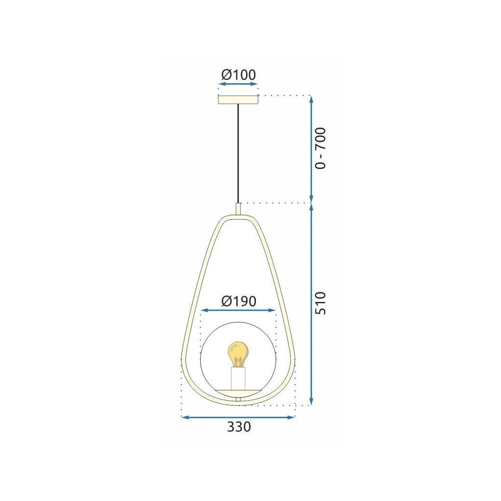 Stropní závěsná lampa vyrobená z kovu a skla.