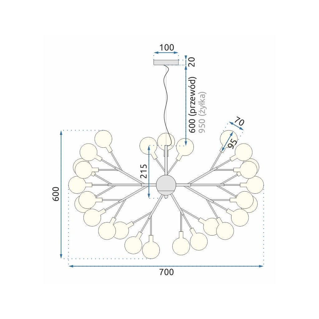 Moderní stropní lampa, vyrobená s maximální pozorností k detailům a detailům. Styl, ve kterém byl vytvořen, bude perfektně fungovat v moderních, minimalistických interiérech. Lampa má 27 stínidel s uzeným sklem, díky čemuž vypadají elegantně a působivě. Na výrobu lampy se použila nejkvalitnější ocel, která byla v další fázi výroby několikrát pokryta vrstvou antistatického skloviny. To umožnilo získat ideální povrch, odolný vůči poškrábání a jakýmkoli odřeninám nebo mechanickému poškození.