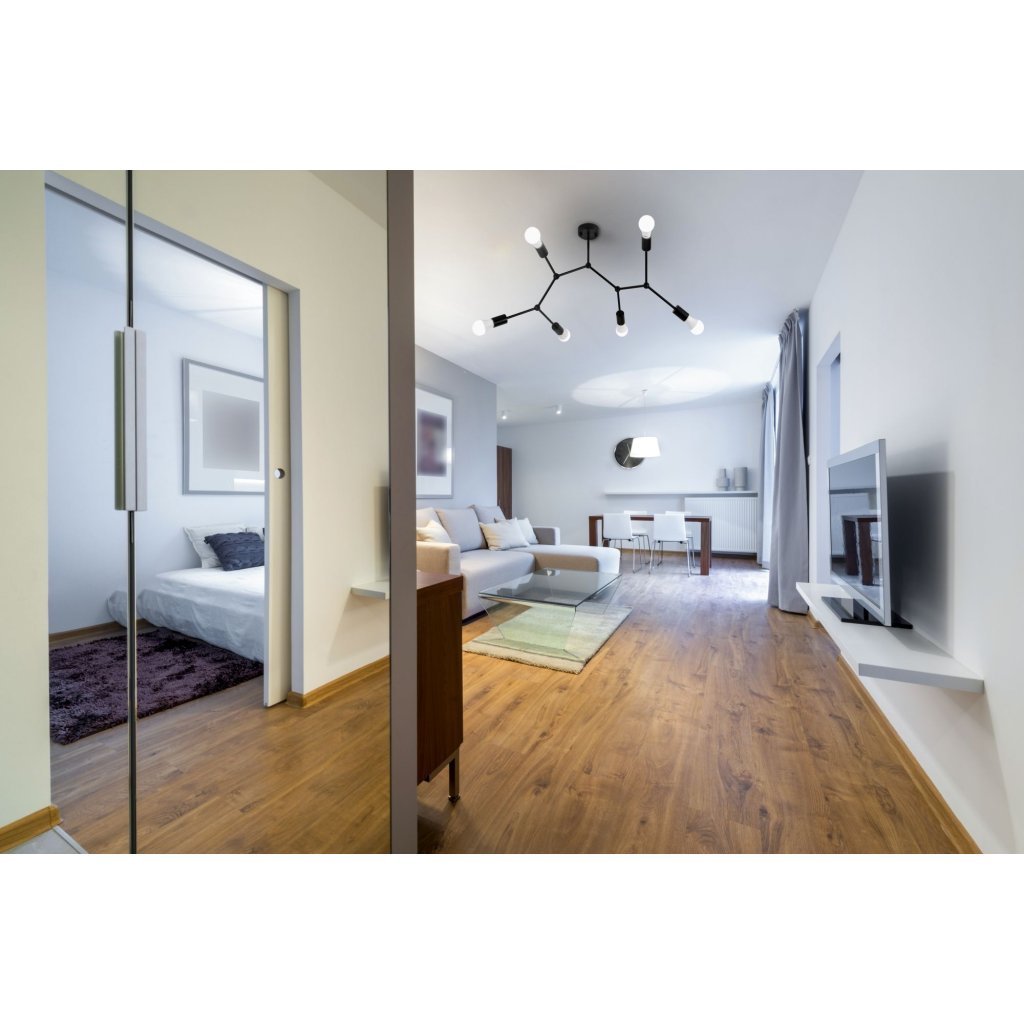 Moderní stropní lampa, vyrobená s maximální pozorností k detailům a detailům. Geometrický styl, ve kterém byl vytvořen, bude dokonale fungovat v moderních, minimalistických podkroví nebo průmyslových interiérech. Na výrobu lampy se použila ocel nejlepší kvality, která byla v další fázi výroby několikrát pokryta vrstvou antistatického skloviny. To umožnilo získat ideální povrch, odolný vůči poškrábání a jakýmkoli odření nebo mechanickému poškození.