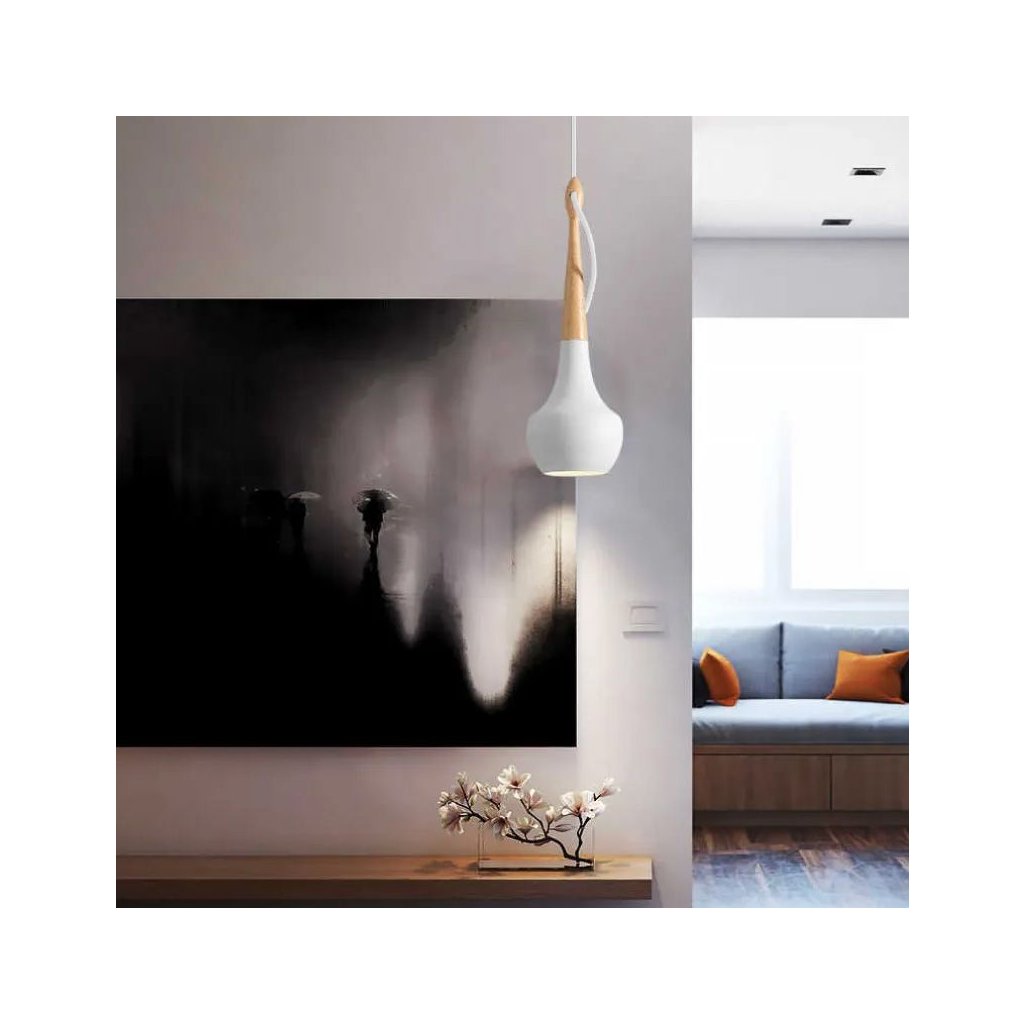 Závěsné svítidlo vyrobené z kovu s krytem na stropě a dříví. Svítilna má nejoblíbenější závit určený pro žárovky E27. Délku kabelu lze přizpůsobit místnosti nebo uspořádání. Na výrobu svítidla byl použit nejkvalitnější materiál. Jedinečný tvar se hodí do každé místnosti, bez ohledu na styl její povrchové úpravy.