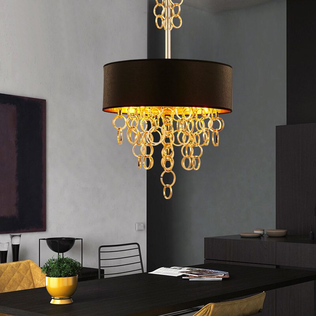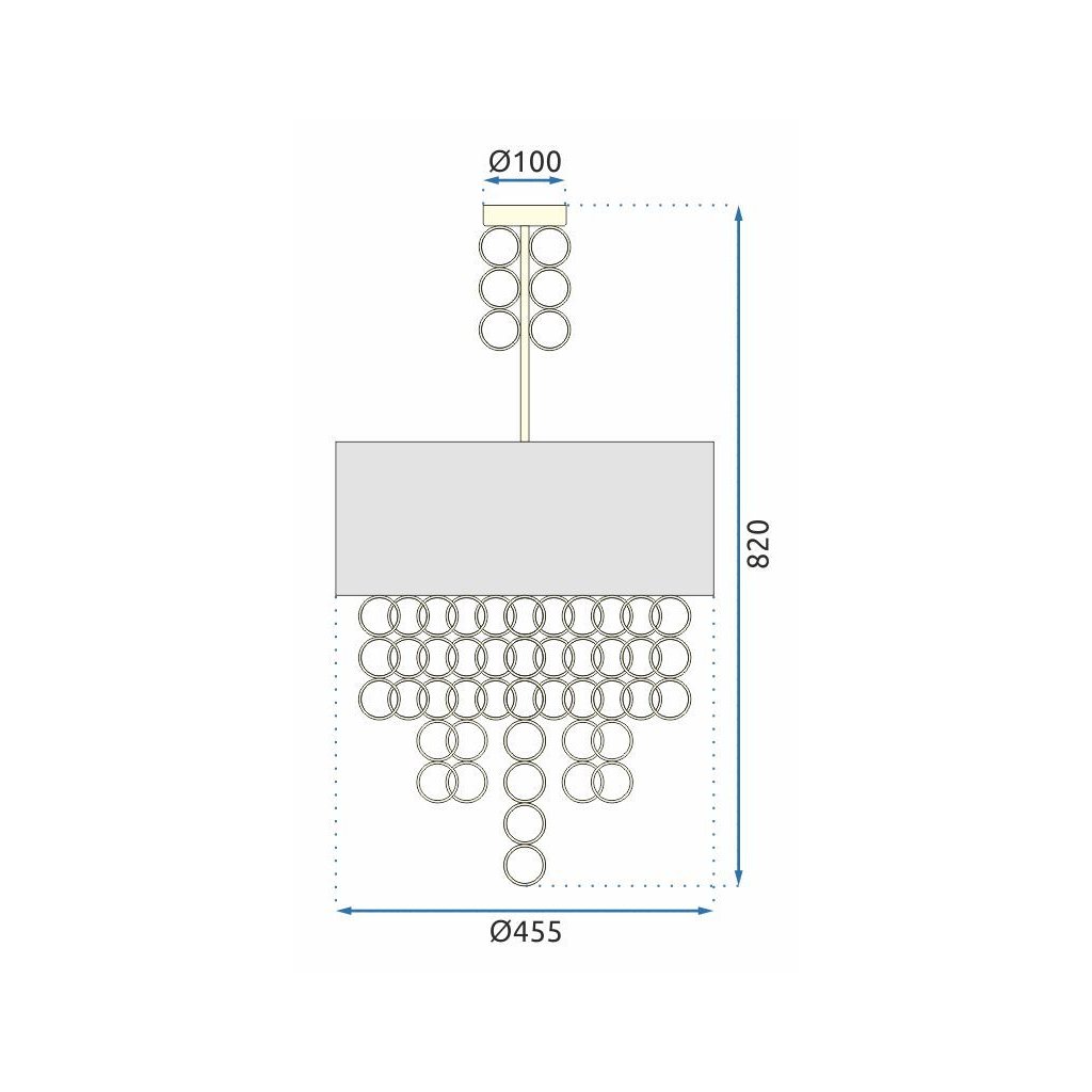 Stínidlo je vyrobeno z černého materiálu se zlatým interiérem a zlatými vazbami zavěšenými na obručích. Kovová konstrukce zajišťuje trvanlivost a dává fenomenální účinek. Lampa má nejoblíbenější nit určenou pro žárovky E27. Délku kabelu lze nastavit podle místnosti nebo uspořádání.