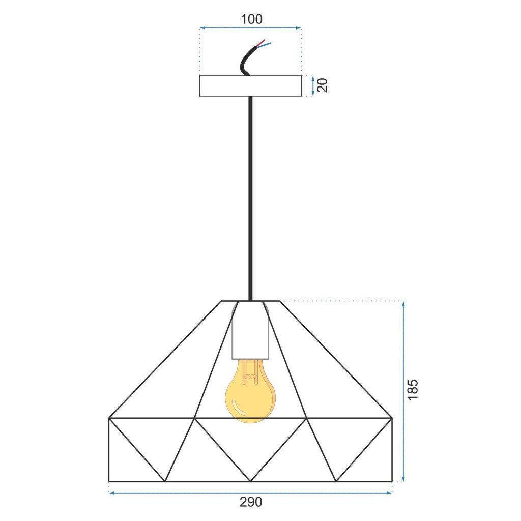 Lampa byla vyrobena z kovu s mřížkou na stropě. Lampa má tradiční nit E27 používanou ve většině lamp.