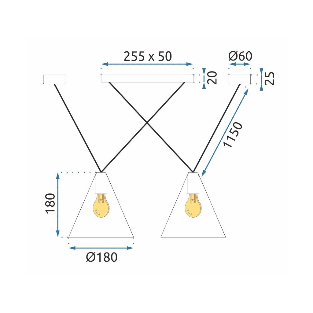Toolight - Závěsné svítidlo E27 60W APP548-2CP, černá, OSW-03189