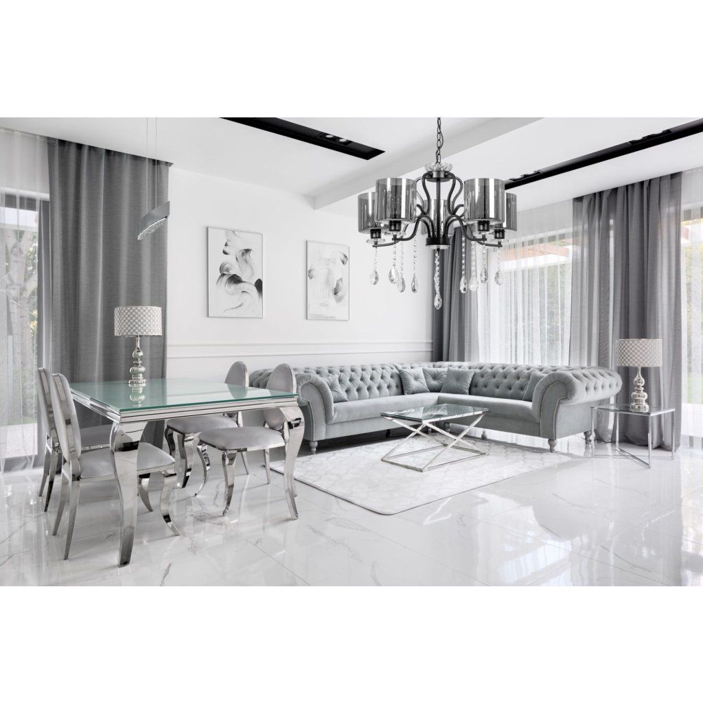 Produkt, který je působivý! Model bude skvěle fungovat v okouzlujících interiérech, ale také v klasických a dokonce velkých podkrovních prostorách. Stropní lampa Glamour je vyrobena z vysoce kvalitního kovu a skla odolného vůči poškrábání nebo mechanickému poškození. Křišťálové odstíny poskytují elegantní vzhled a vytváří krásný světelný efekt. Součástí je také montážní sada. Nejsou zahrnuty žádné žárovky.