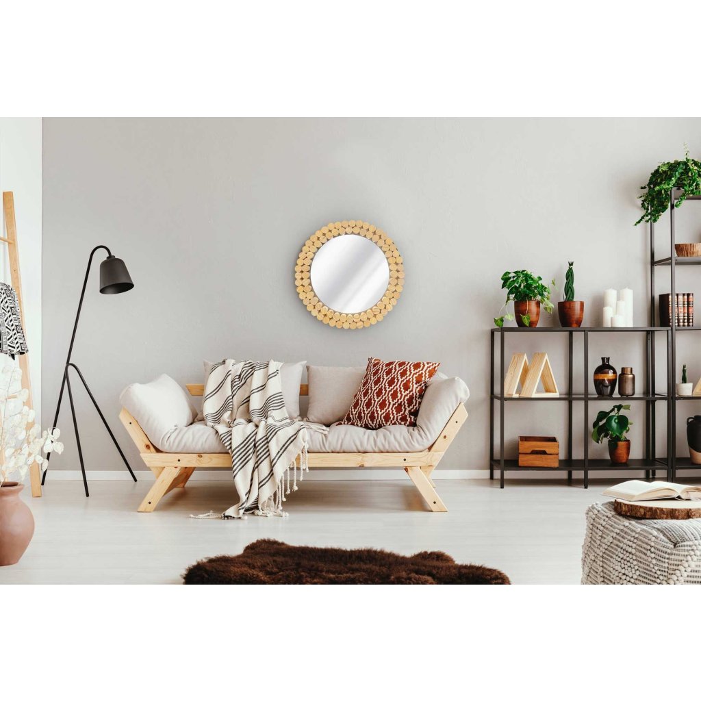 Tutumi, nástěnné zrcadlo Boho 36 cm KLNA-MR01, světle hnědá, HOM-02802