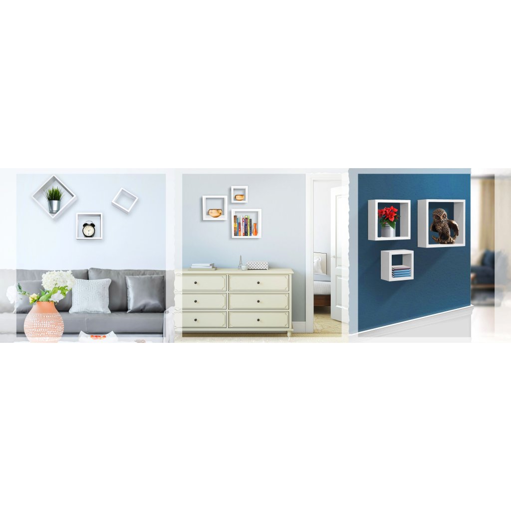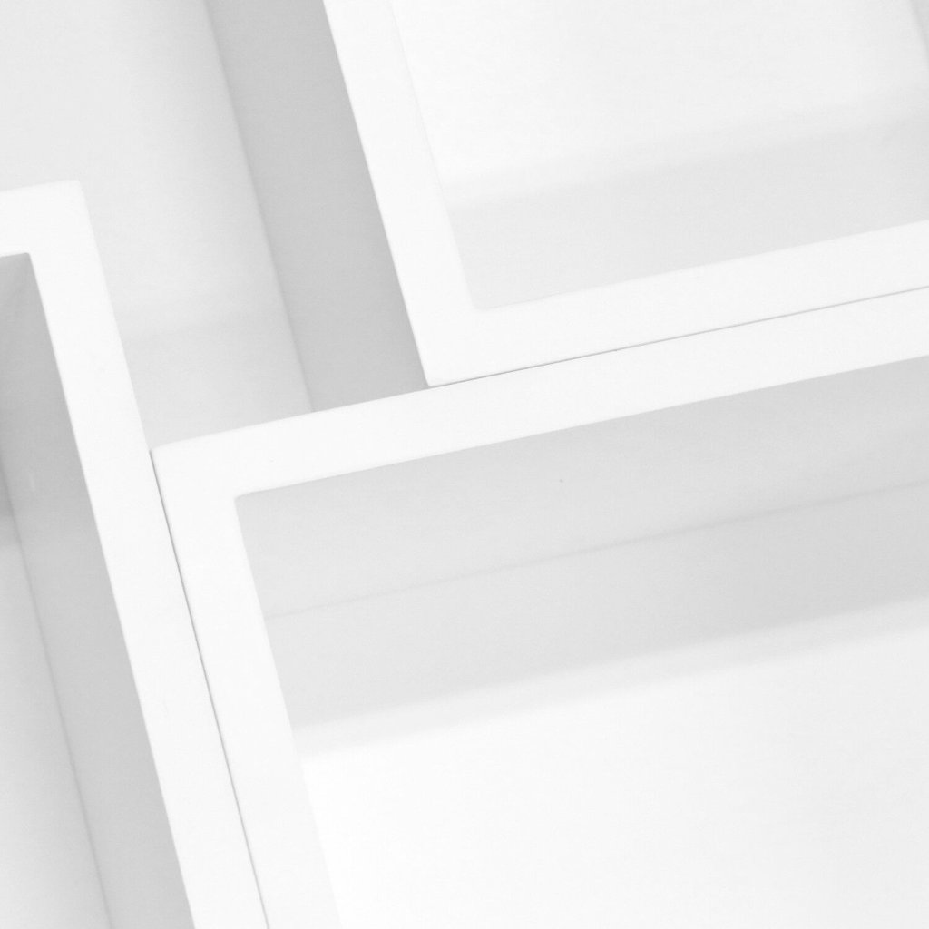 Minimalistický regál dokonale zapadne do každého typu designu, od skandinávského, přes loftové, industriální, až po běžné, tradiční. Čtvercové police různých rozměrů jsou vyrobeny z odolného MDF, pokrytého elegantním bílým barvivem.