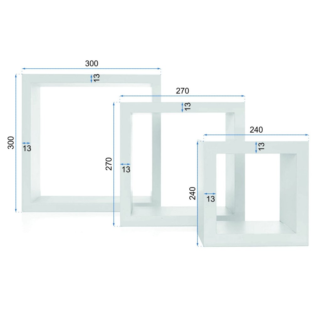 Tutumi, sada 3 nástěnných polic FFT300/270/240, bílá, HOM-06600