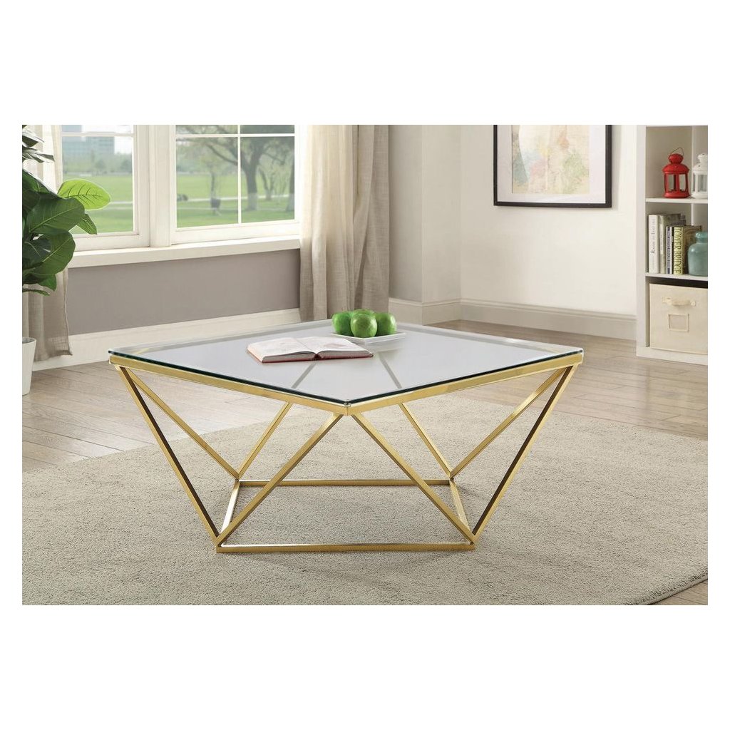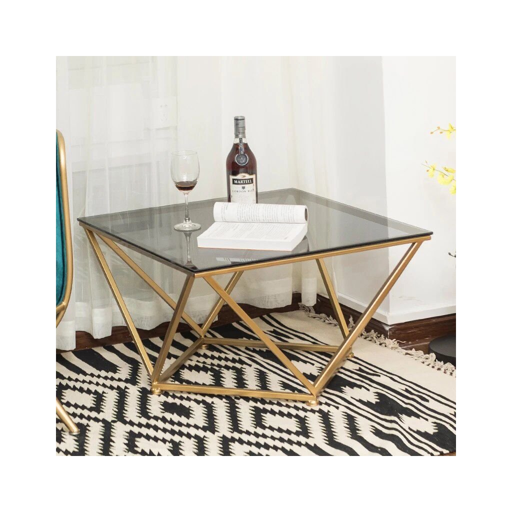 Tutumi, skleněný konferenční stolek Glamour 80x80x45 CS-14G, zlatá, KRZ-06585
