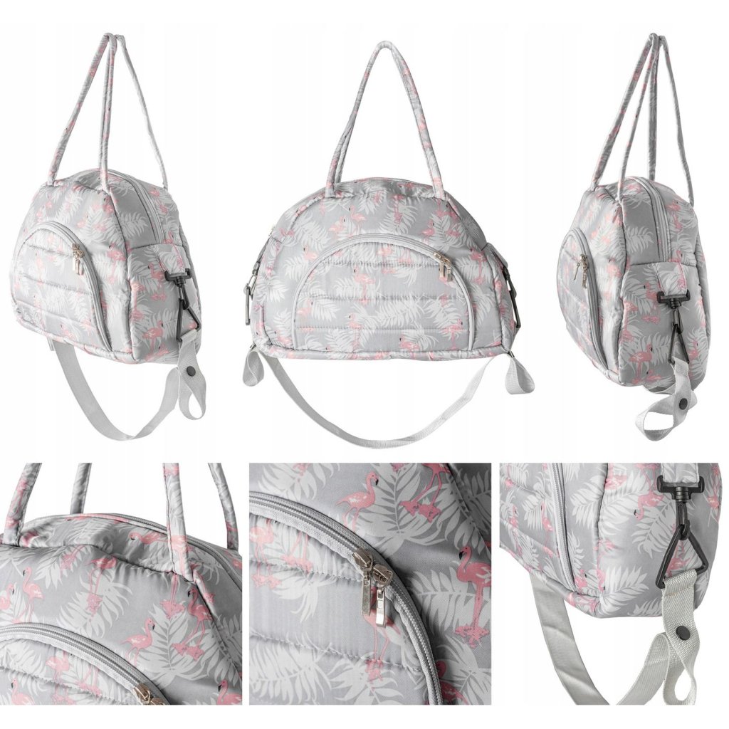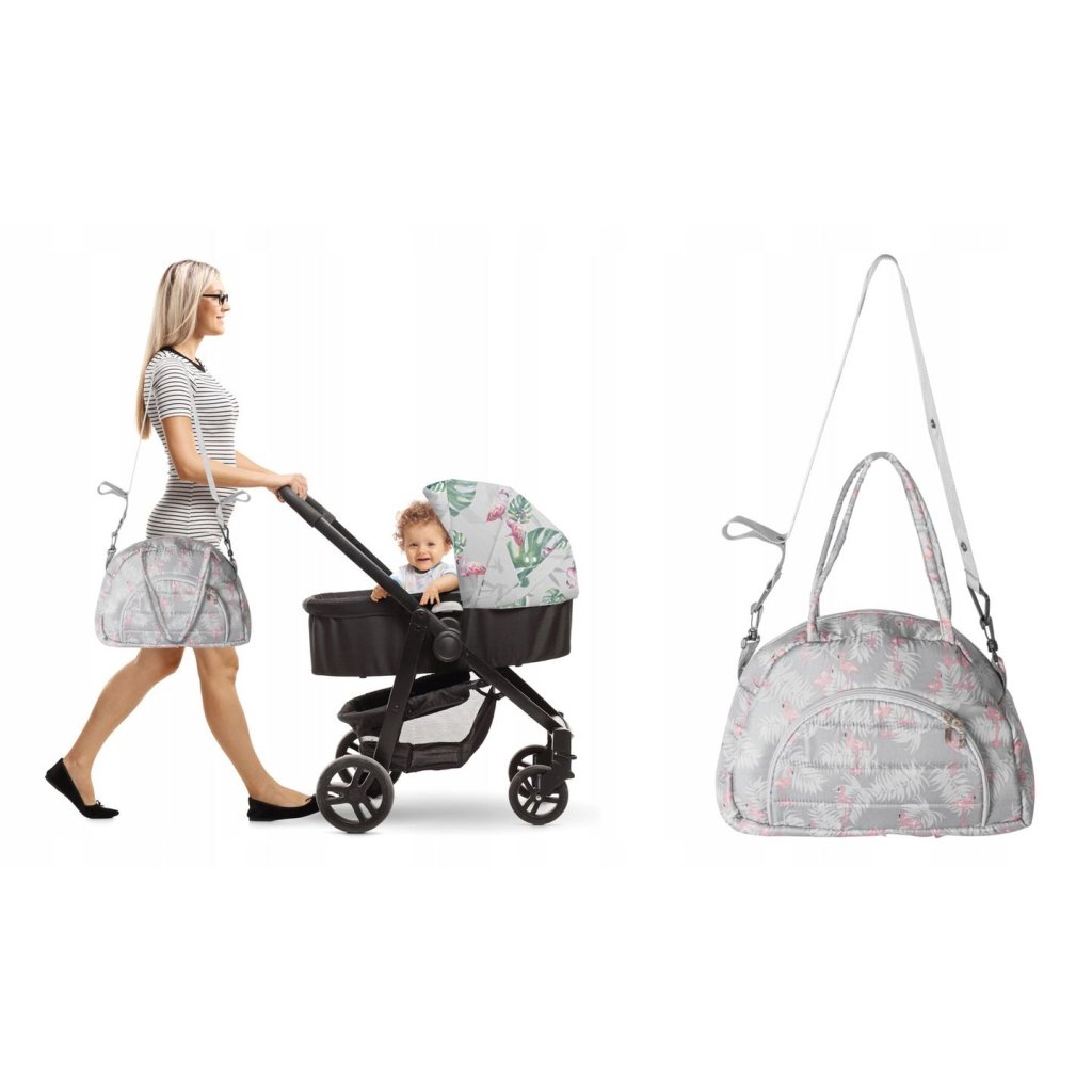 Tutumi, závěsná taška na kočárek s pasem 40x30x13 cm, šedá vzor FLAMING, NAZ-07617