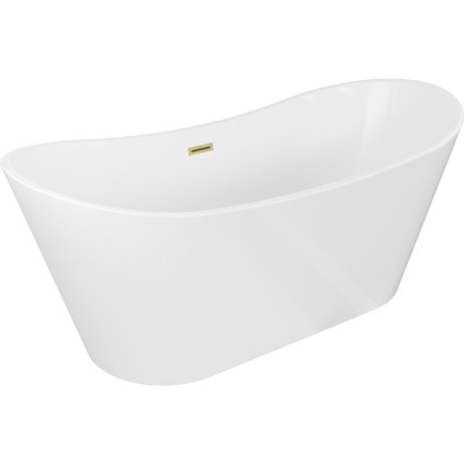Mexen Oval, volně stojící nástěnná vana 150 x 75 cm, bílá-černá, zlatý lesklý přepad, 52671507575-50