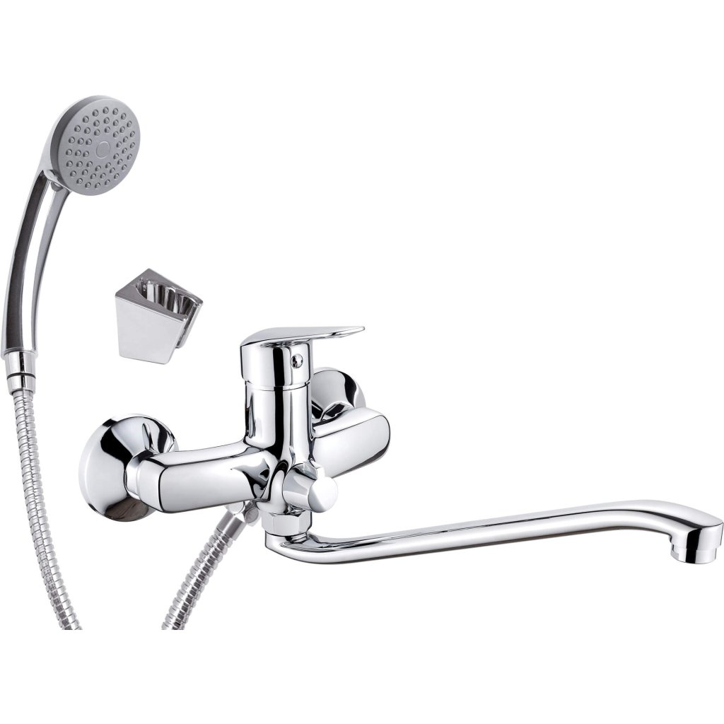 Washbasin tap, zeď-mounted, s elongated spout - connection for hose and shower set